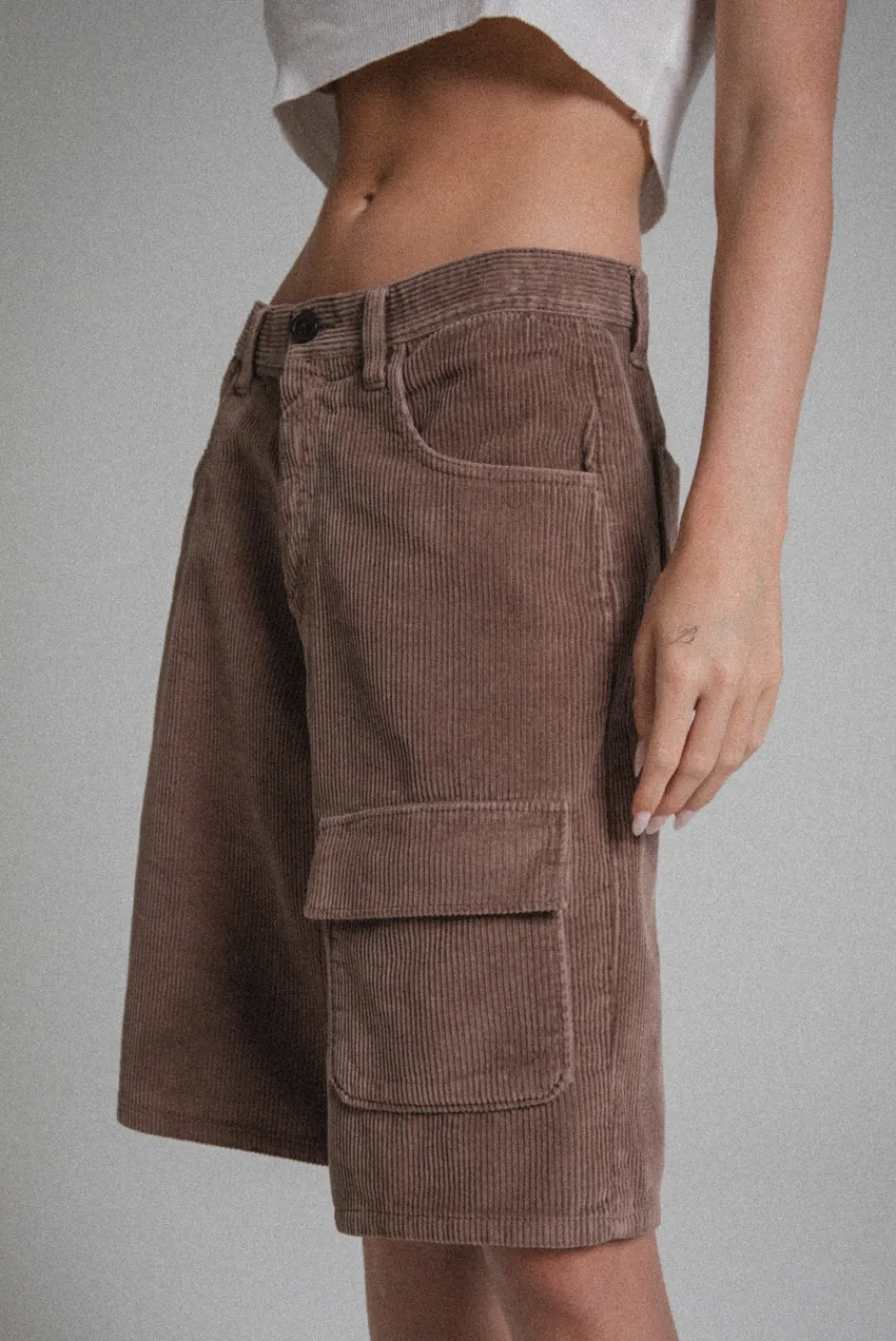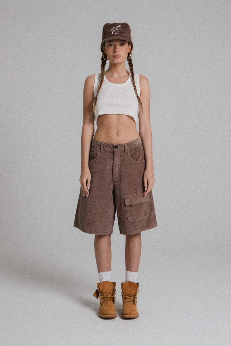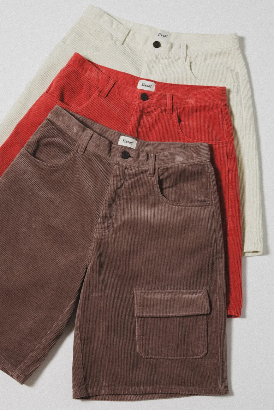BAGGY CORDUROY SHORT These corduroy shorts come just in time for the summer. The Baggy Corduroy Short comes with similar styling as its pant counterpart, with exception of the Elwood embroidery and an added pocket detail. Available in Cedar, Fire and Pearl.