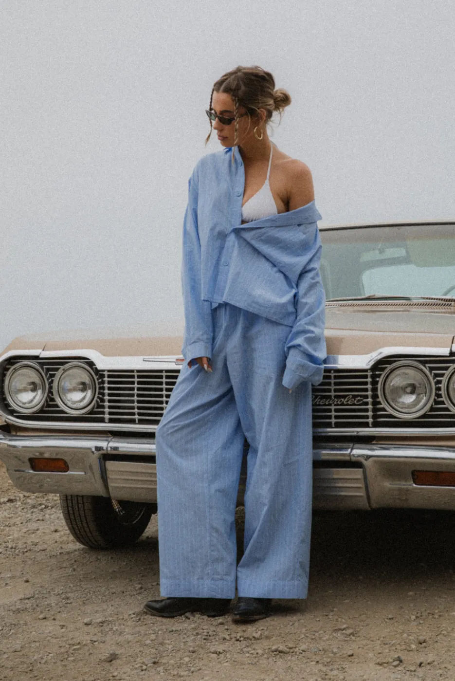 A lightweight loungewear essential. Made from the same airy fabric as the Boxer Pant, paired together it makes for a relaxed, effortless matching look. This long sleeve button-down has a boxy, slightly cropped fit. Featuring a chest pocket and woven label branding on the back yoke.