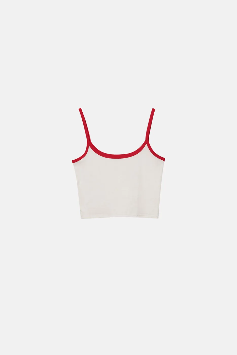 CAMI TANK The hottest days call for the Cami Tank. Cropped with contrasting spaghetti straps, each colorway features a custom Los Angeles-themed screenprint. Available in two colors.