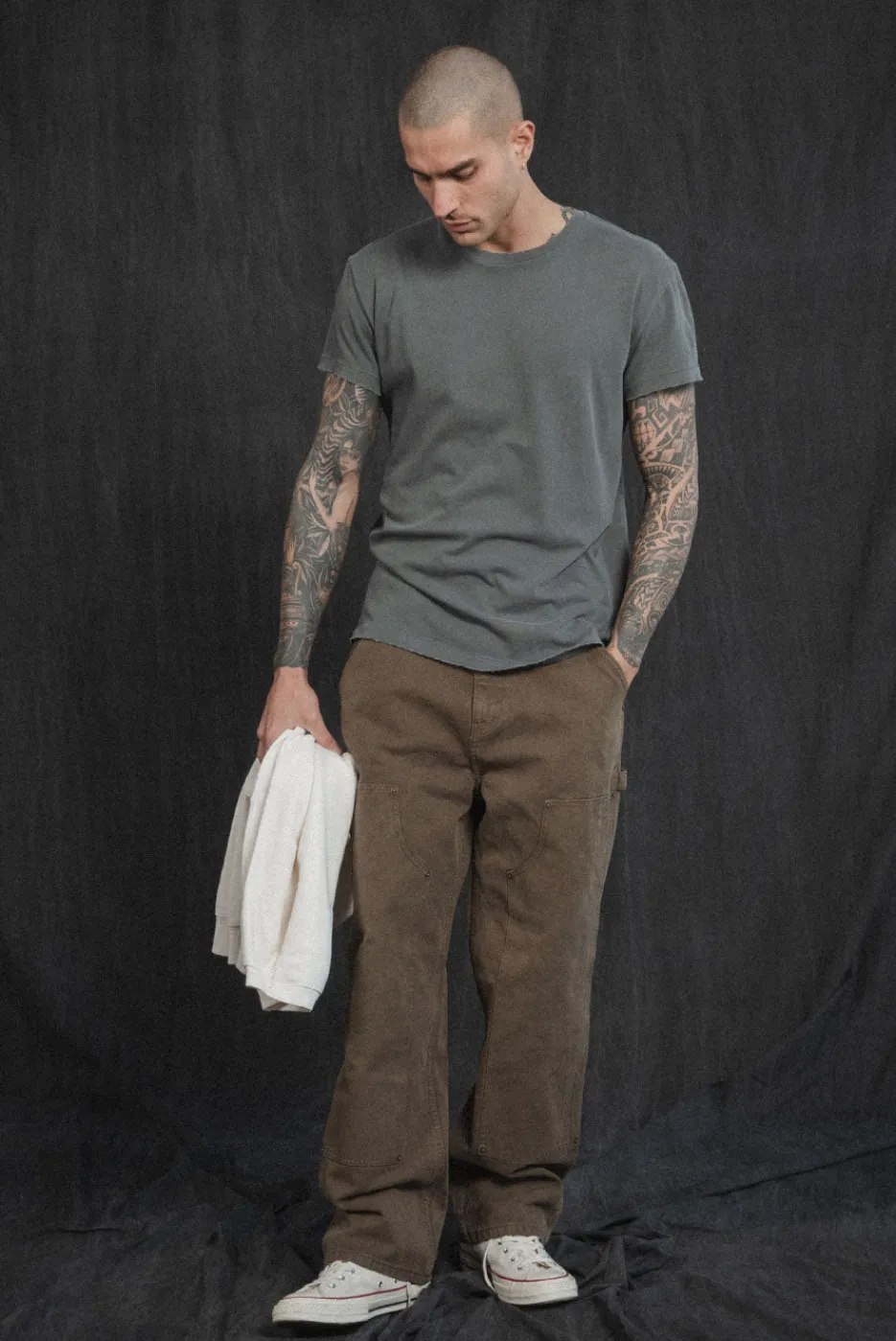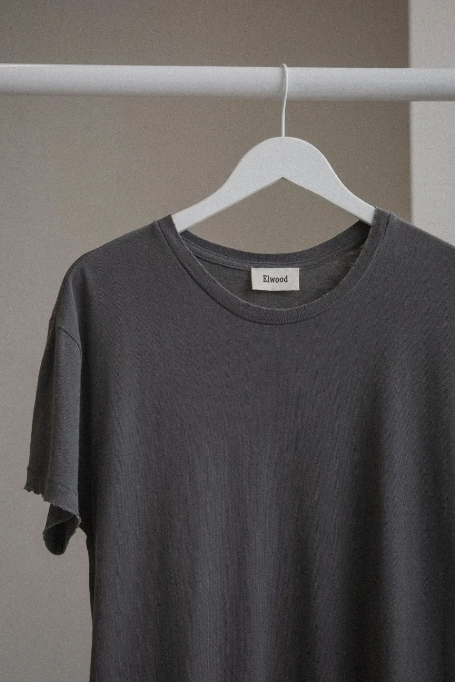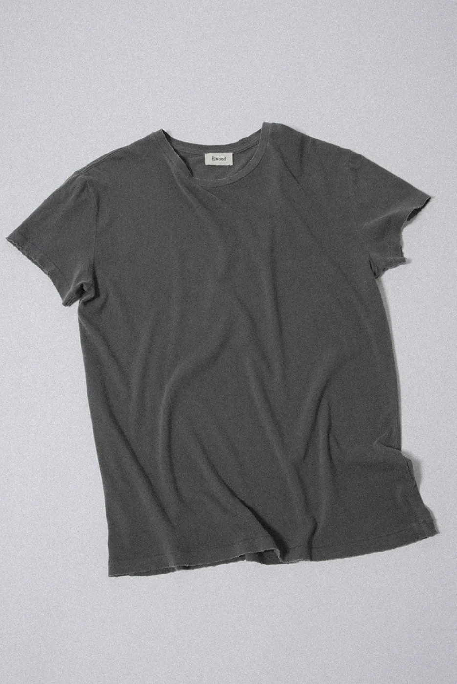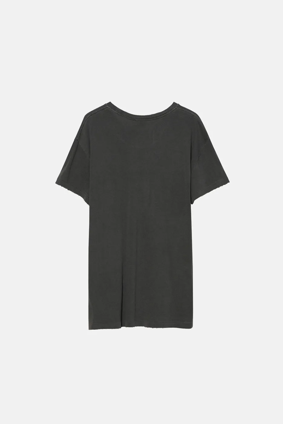 A vintage-inspired tee with a standard fit, cap sleeves, and slightly longer and slimmer proportions. Made with hand-distressed garment washed 100% cotton jersey.