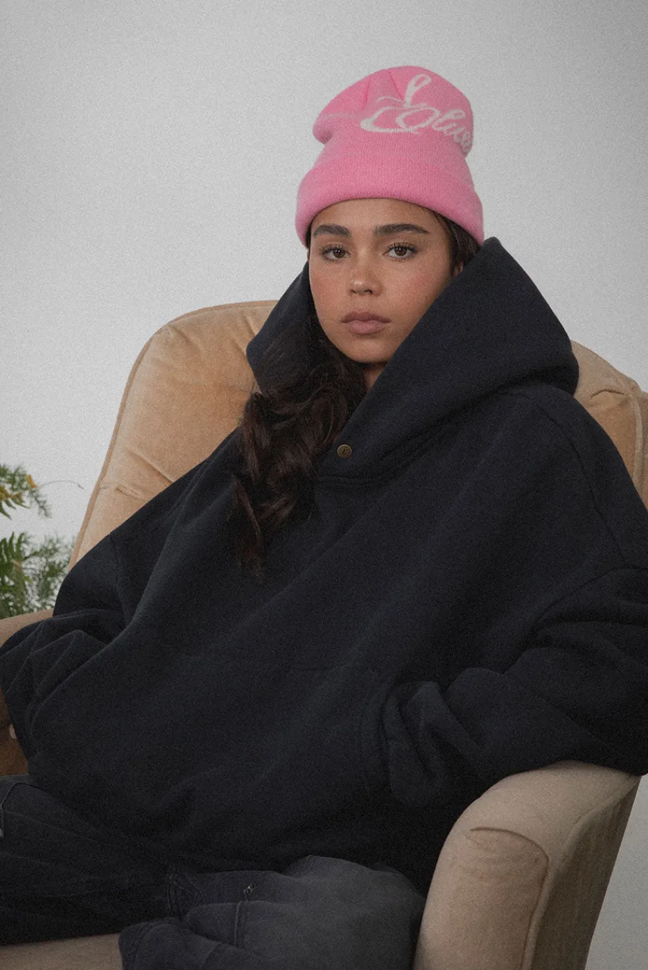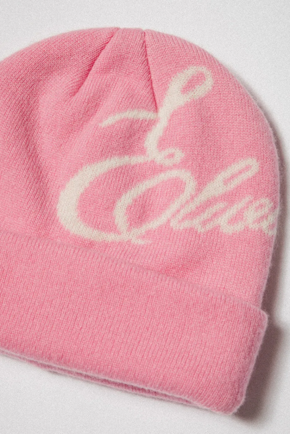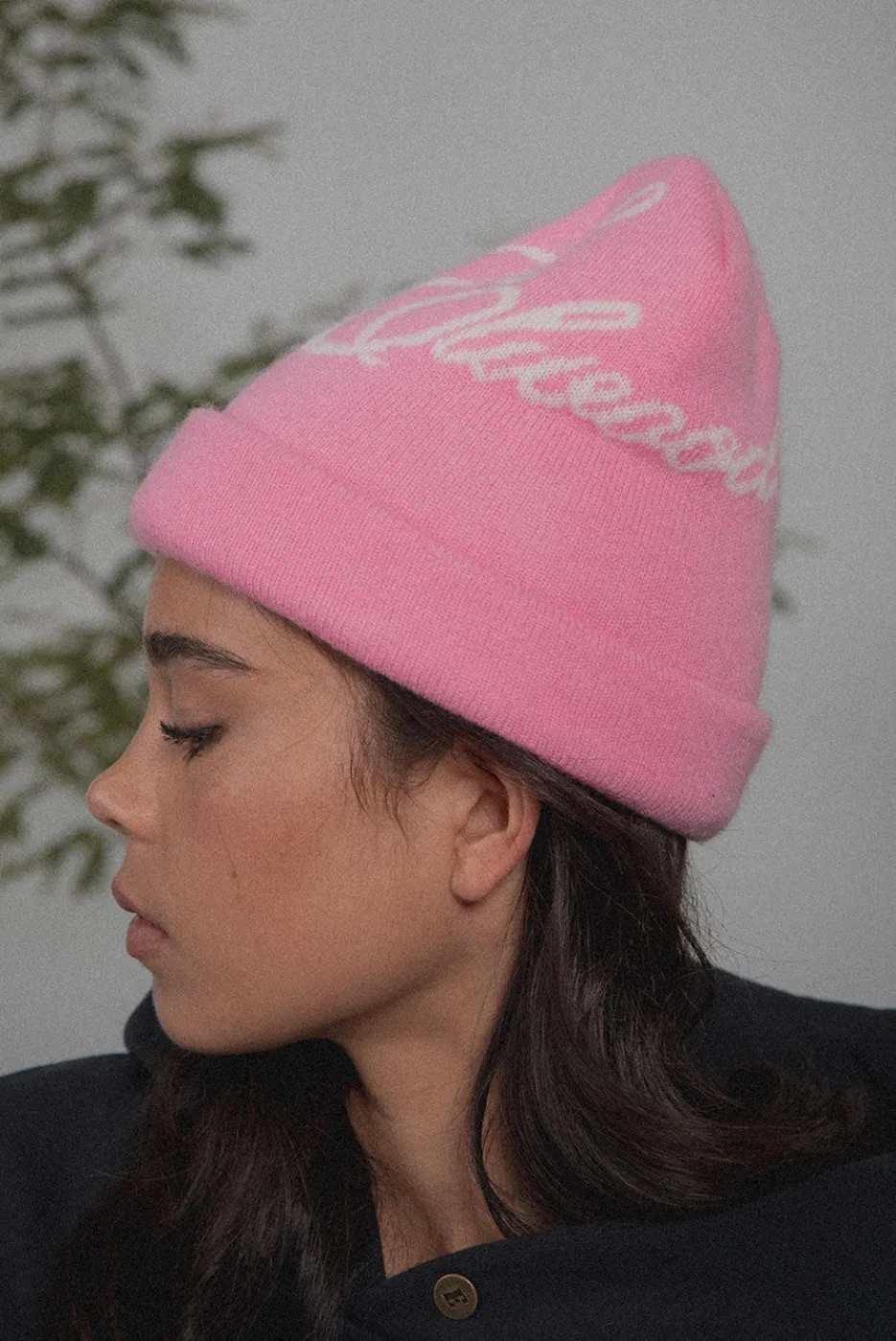This beanie is made with cashmere and a mohair-wool blend for a soft handfeel that keeps you warm. Embroidered with a contrasting cursive Elwood logo. Available in Black Ice, Pink, and Snow.