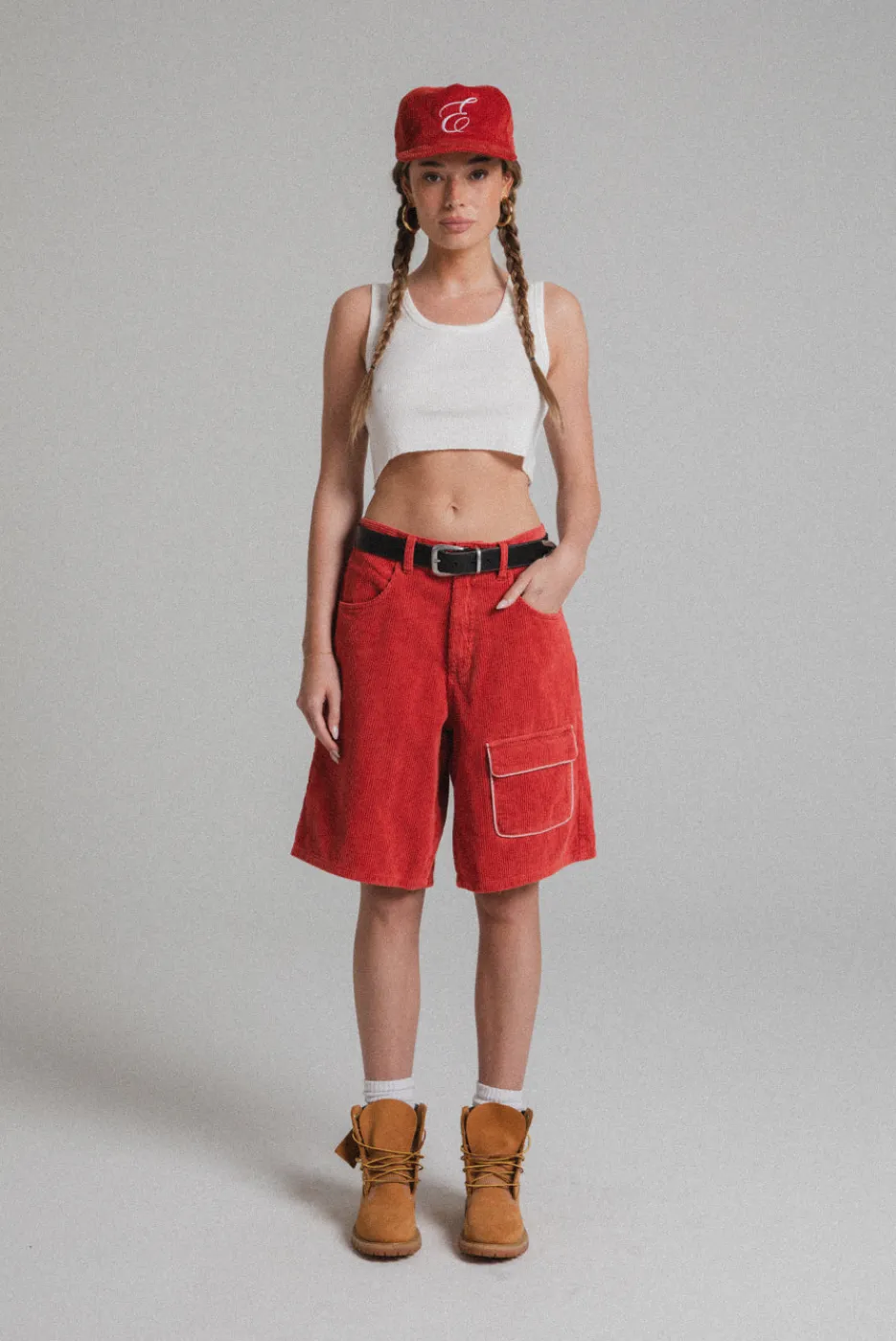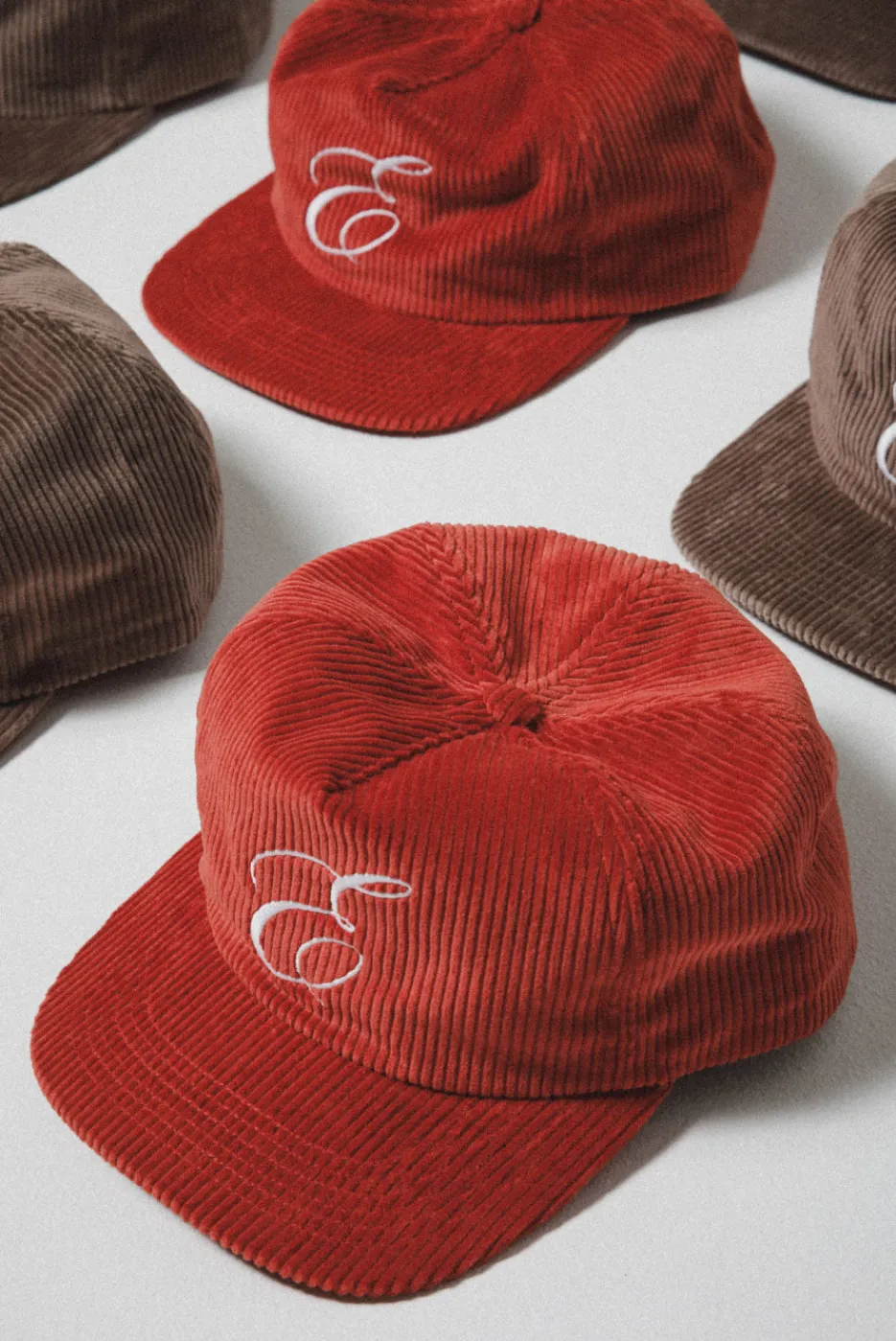 100% COTTONEMBROIDERED “E”SNAP CLOSURECORDUROY HATThis cut and sew hat features a high crown and “E” cursive embroidery….