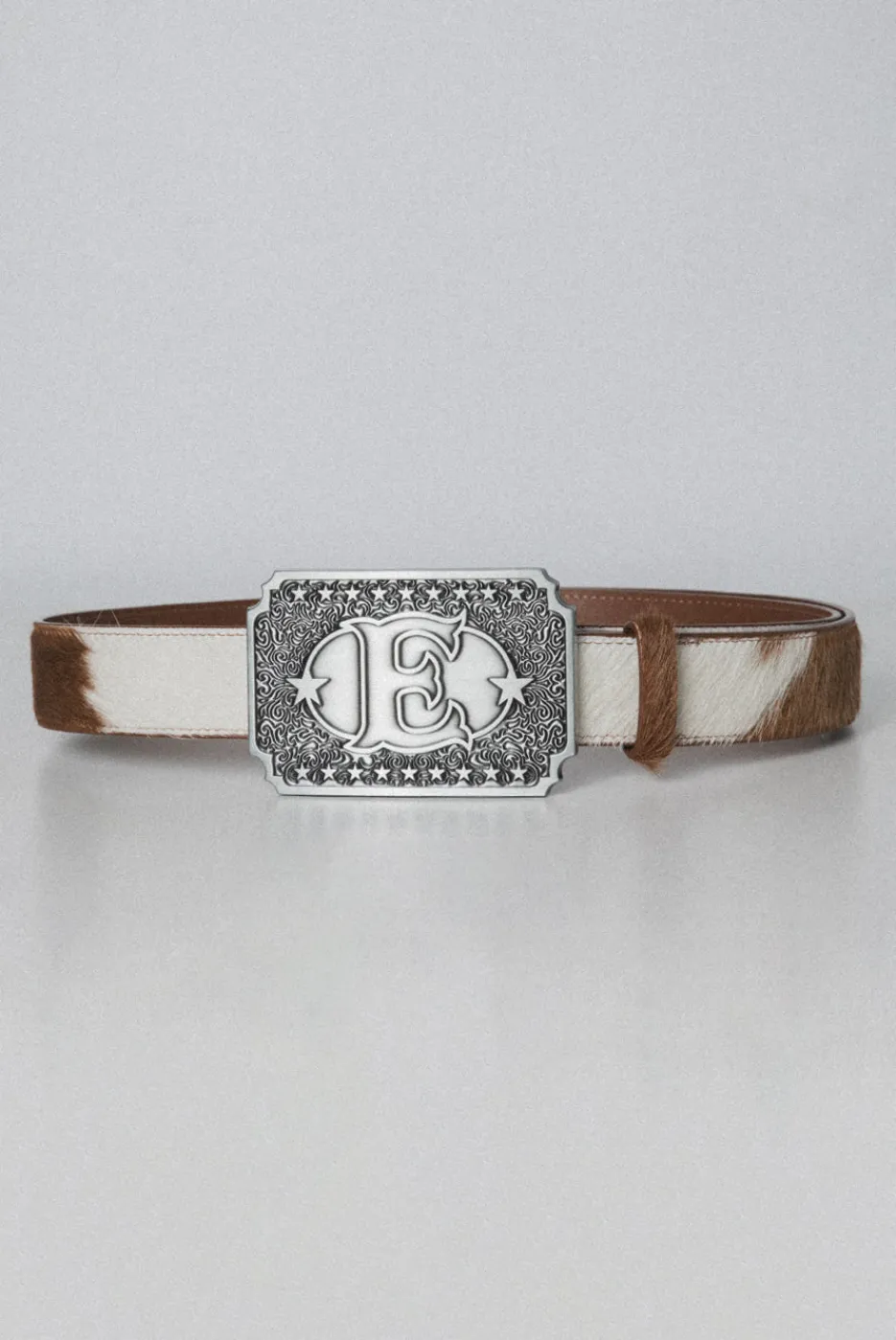 The Elwood Belt is made from genuine hair-on cowhide. The belt buckle features a custom Elwood design and is removable and interchangeable for versatility. Each belt will vary slightly due to the nature of the material. Available in Cowhide.