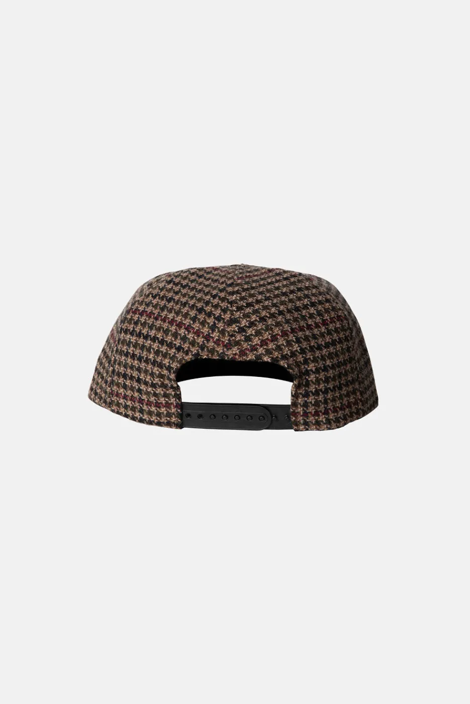 Our signature Trademark Cap, in our ‘Grandad’ collection houndstooth fabric. Features Elwood embroidery and a snapback closure for a classic look.