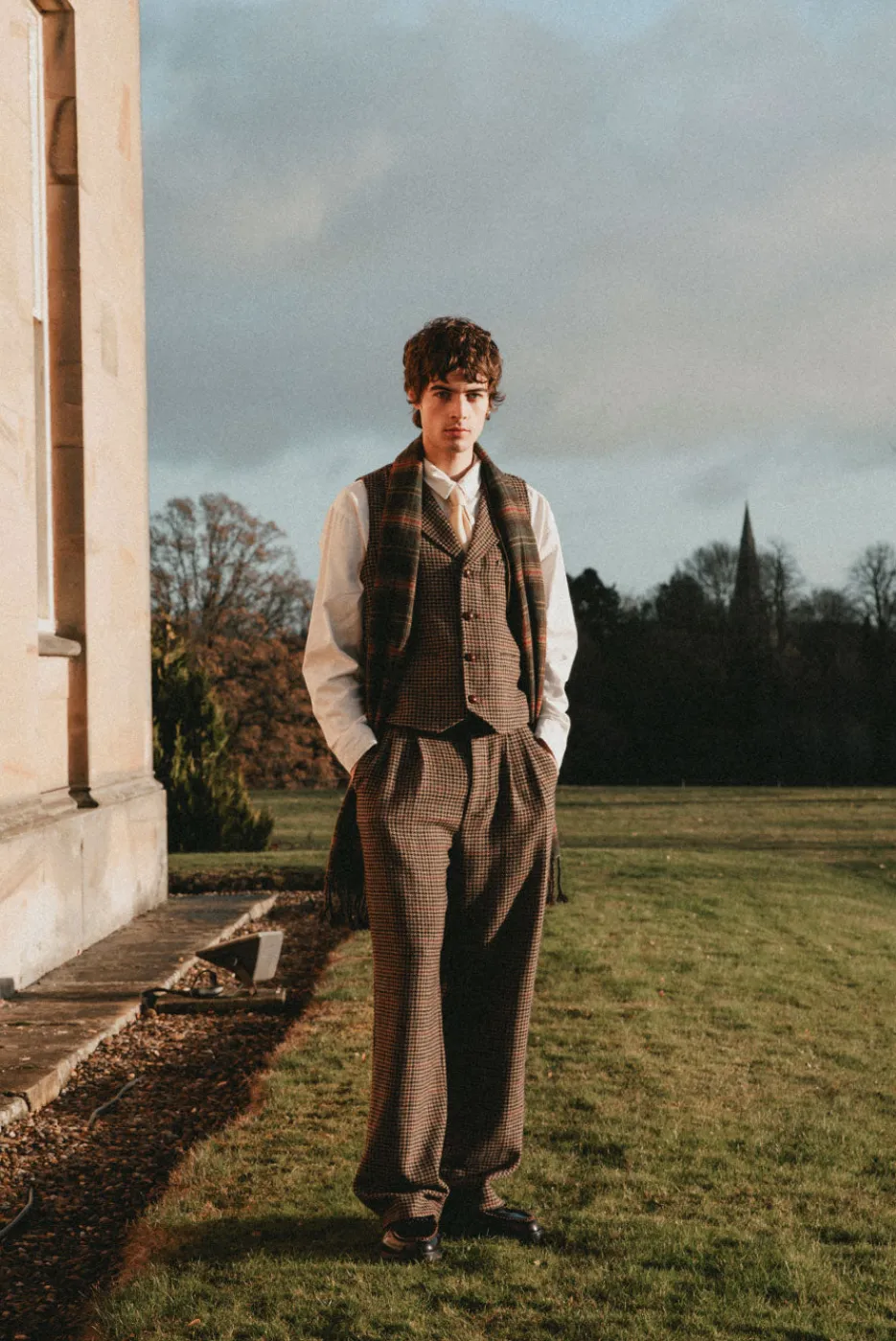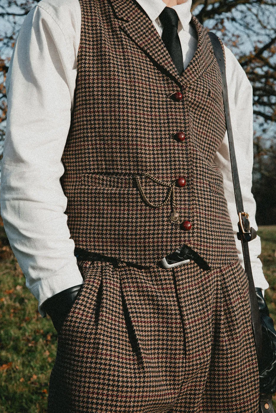 This fitted, tailored vest features leather-wrapped buttons and a tailored silhouette for a polished, vintage-inspired look. Available in ‘Brown Houndstooth’ and designed to match with the Grandad Cropped Blazer and Grandad Pant.
