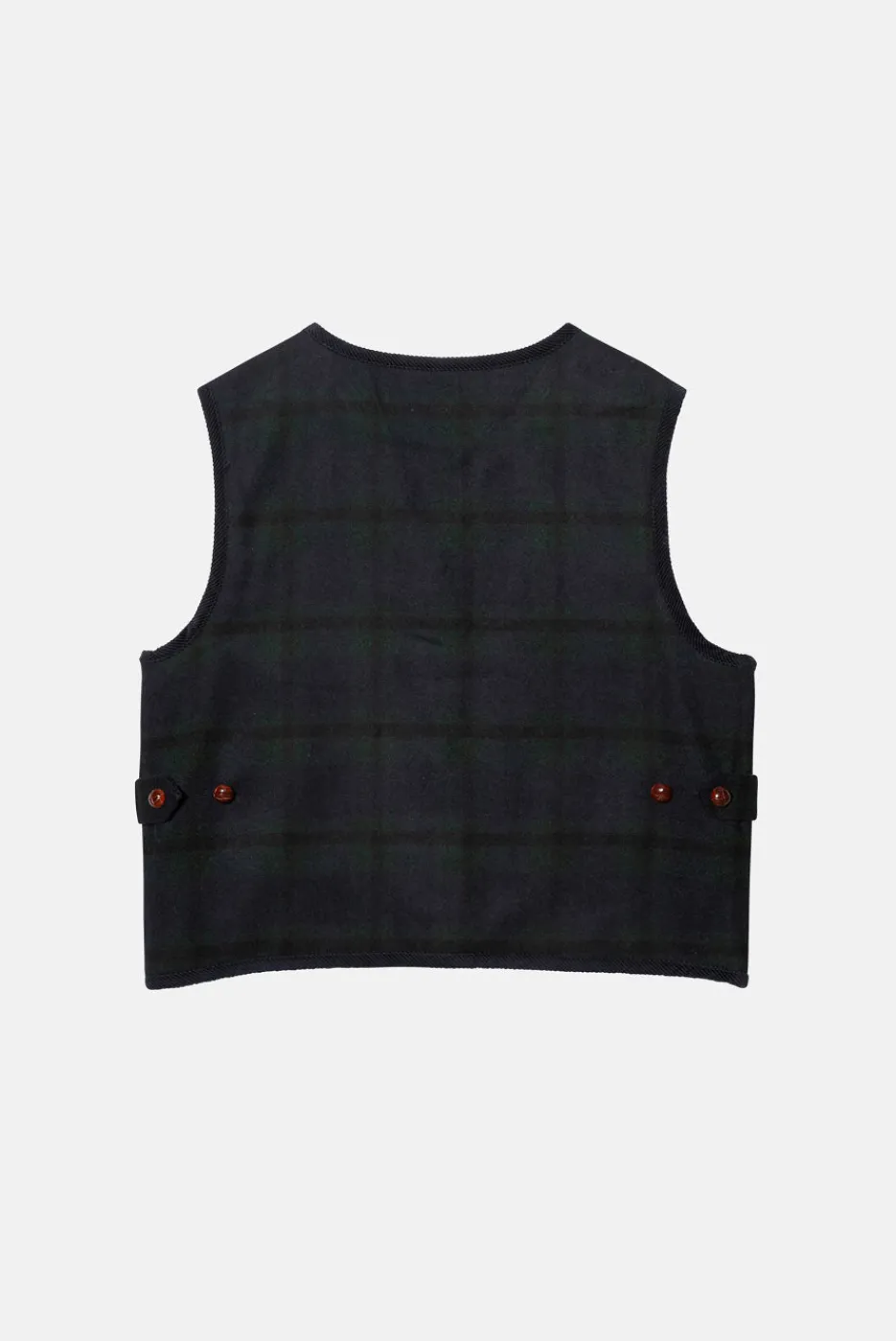 50% WOOL 50% POLYESTER PLAIDREAL LEATHER WRAPPED BUTTONStktk