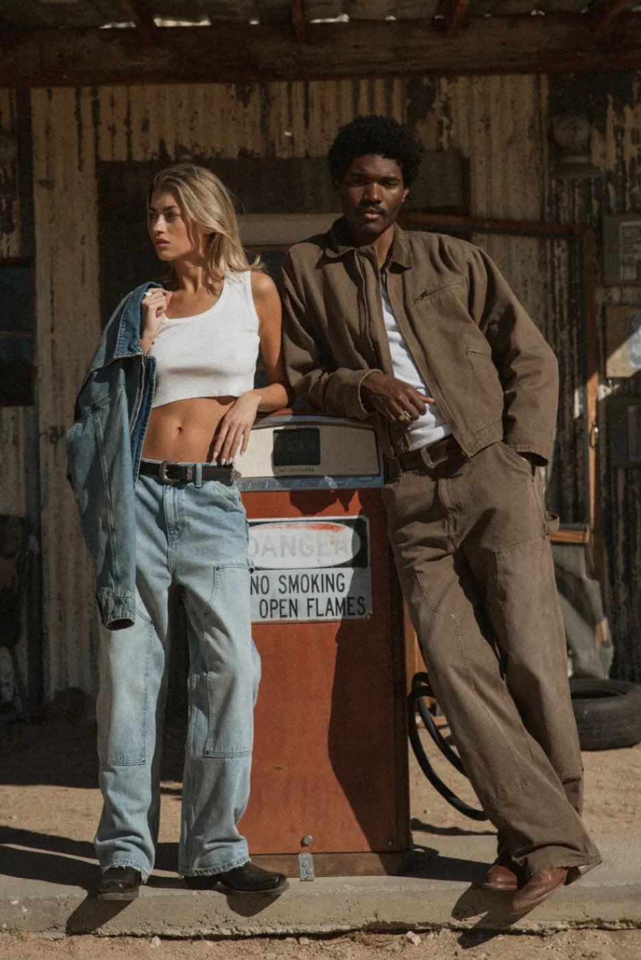 100% COTTON DENIM, 14.9 OZ AWELWOOD BRANDED METAL RIVETSDIME POCKETBASED ON A VINTAGE CARPENTER PANT