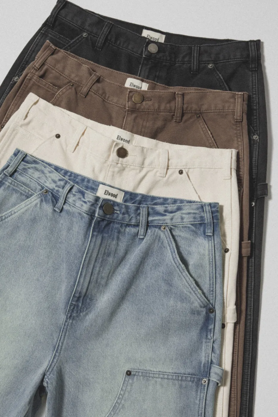 100% COTTON DENIM, 14.9 OZ AWELWOOD BRANDED METAL RIVETSDIME POCKETBASED ON A VINTAGE CARPENTER PANT