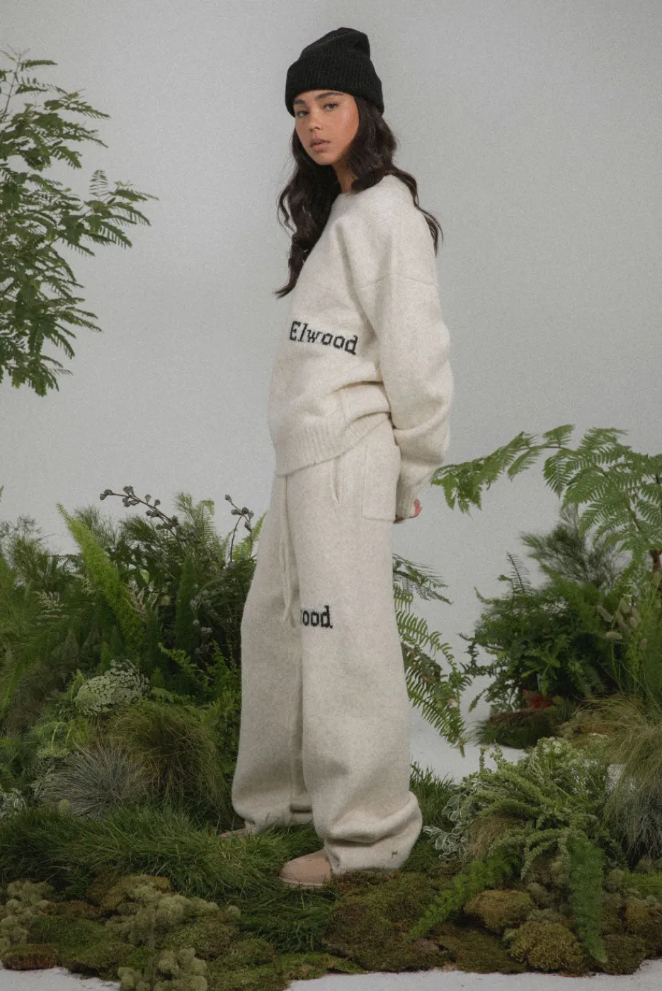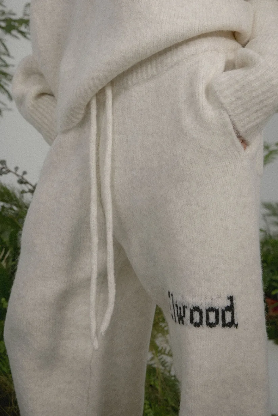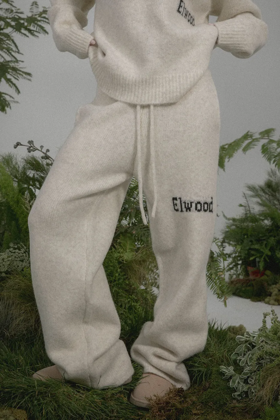 This wool blend, straight leg sweatpant features Elwood jacquard branding and matching fabric drawcords. Pair it with our Knit Crewneck Sweater to complete the matching set.