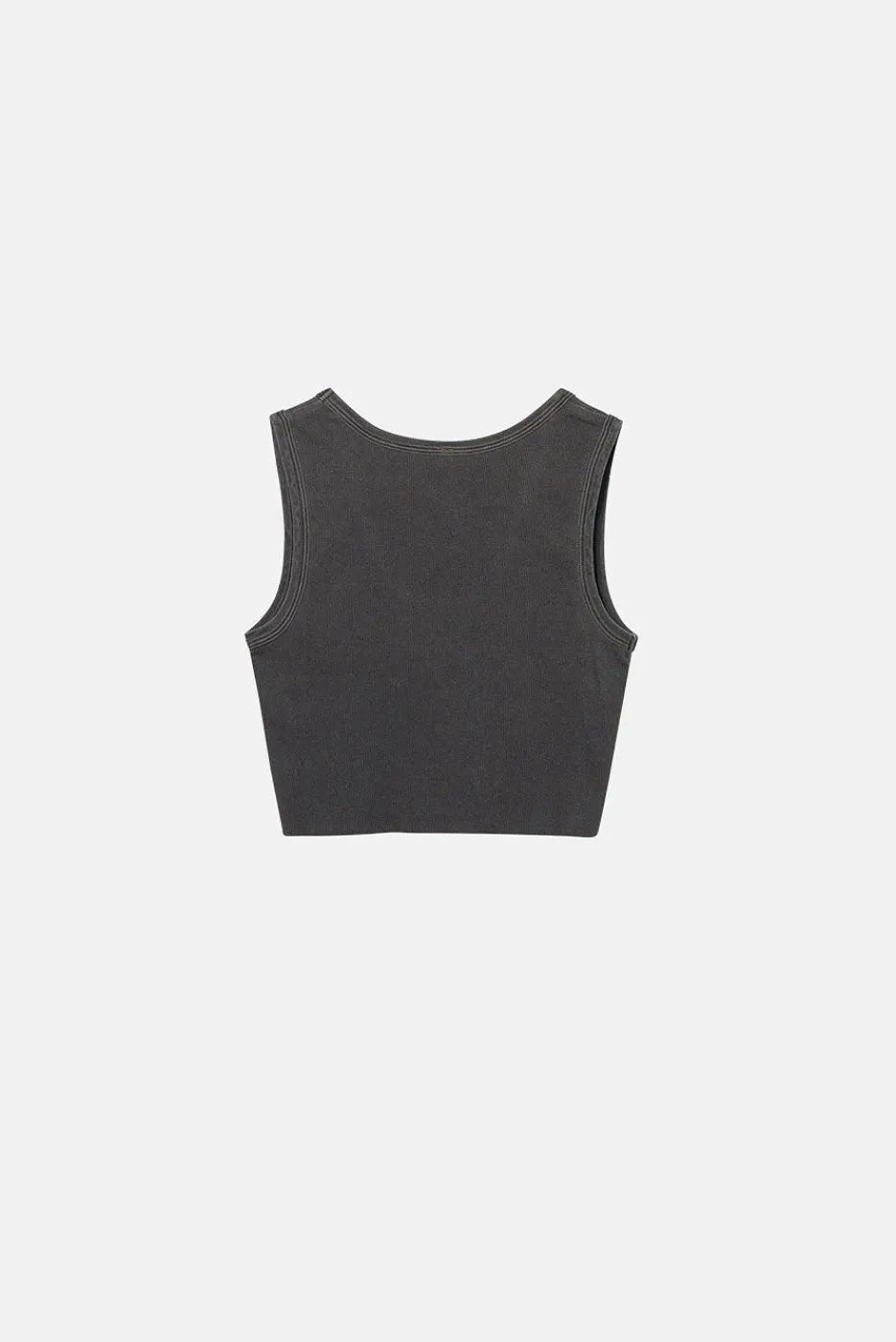 A 100% cotton rib tank with a vintage-inspired, cropped raw-edge hemline. Garment washed for a vintage feel. Perfect for layering or on its own. Your call.