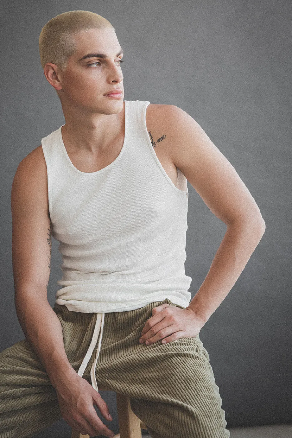 An essential lightweight tank for layering. Made with a slightly longer length in single-stitched 100% cotton rib. Garment washed for a vintage feel.
