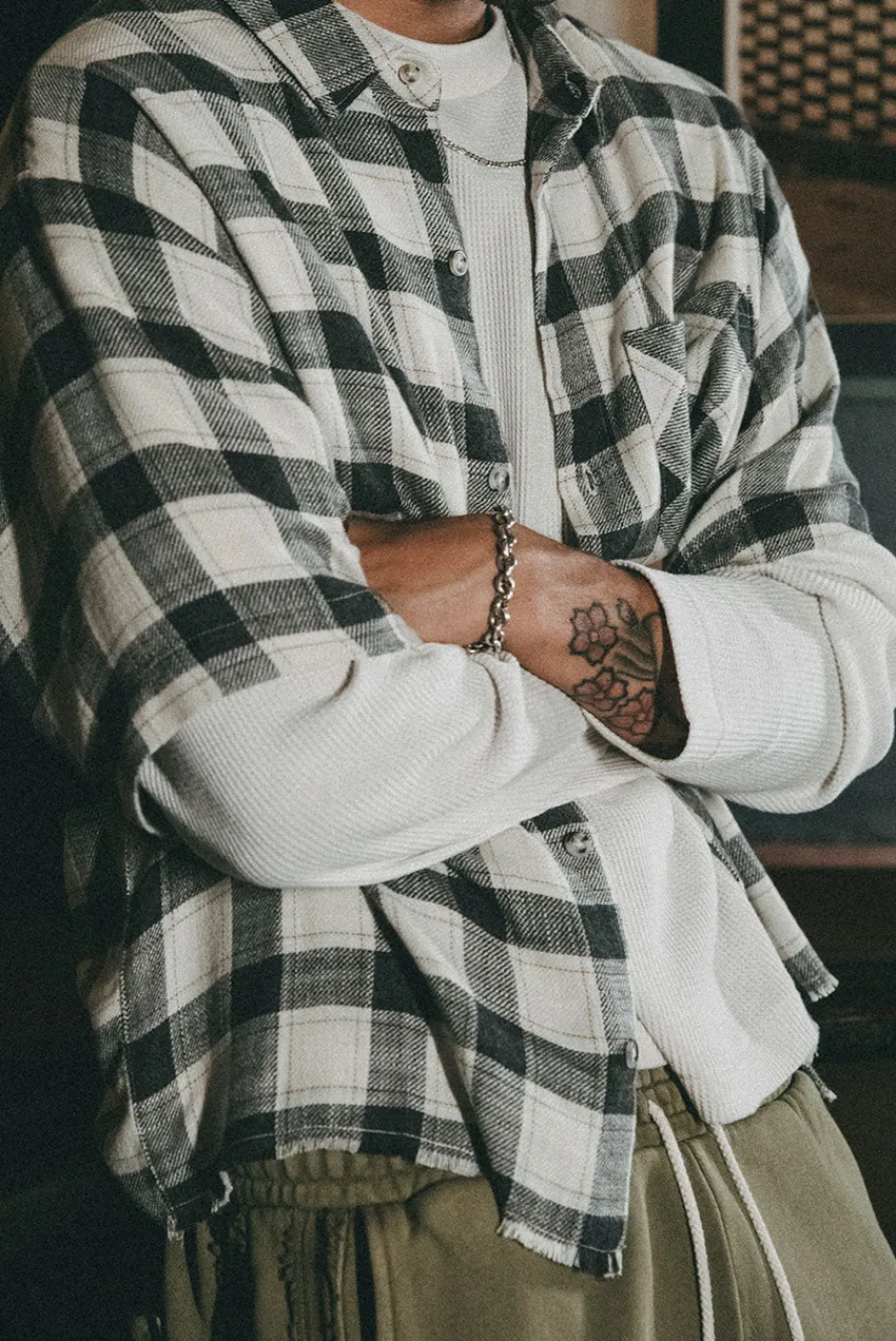 The Outlander Thermal is made from a lightweight waffle-knit fabric with a slightly cropped fit. Wear it alone or layer for cooler days and nights. Available in off-white and black.