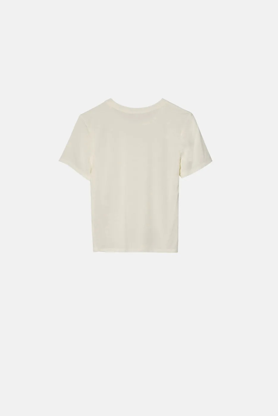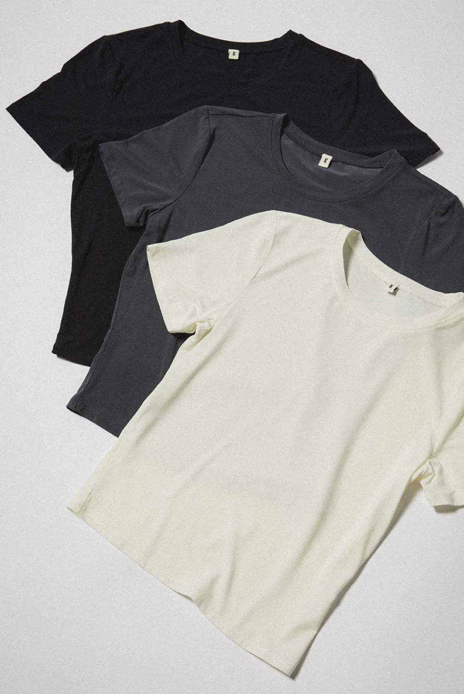 THIN SLICK JERSEY, 90% MODAL, 10% SPANDEXSLIM FITA form-fitting, stretchy women’s tee with a longer fit meant to sit c…