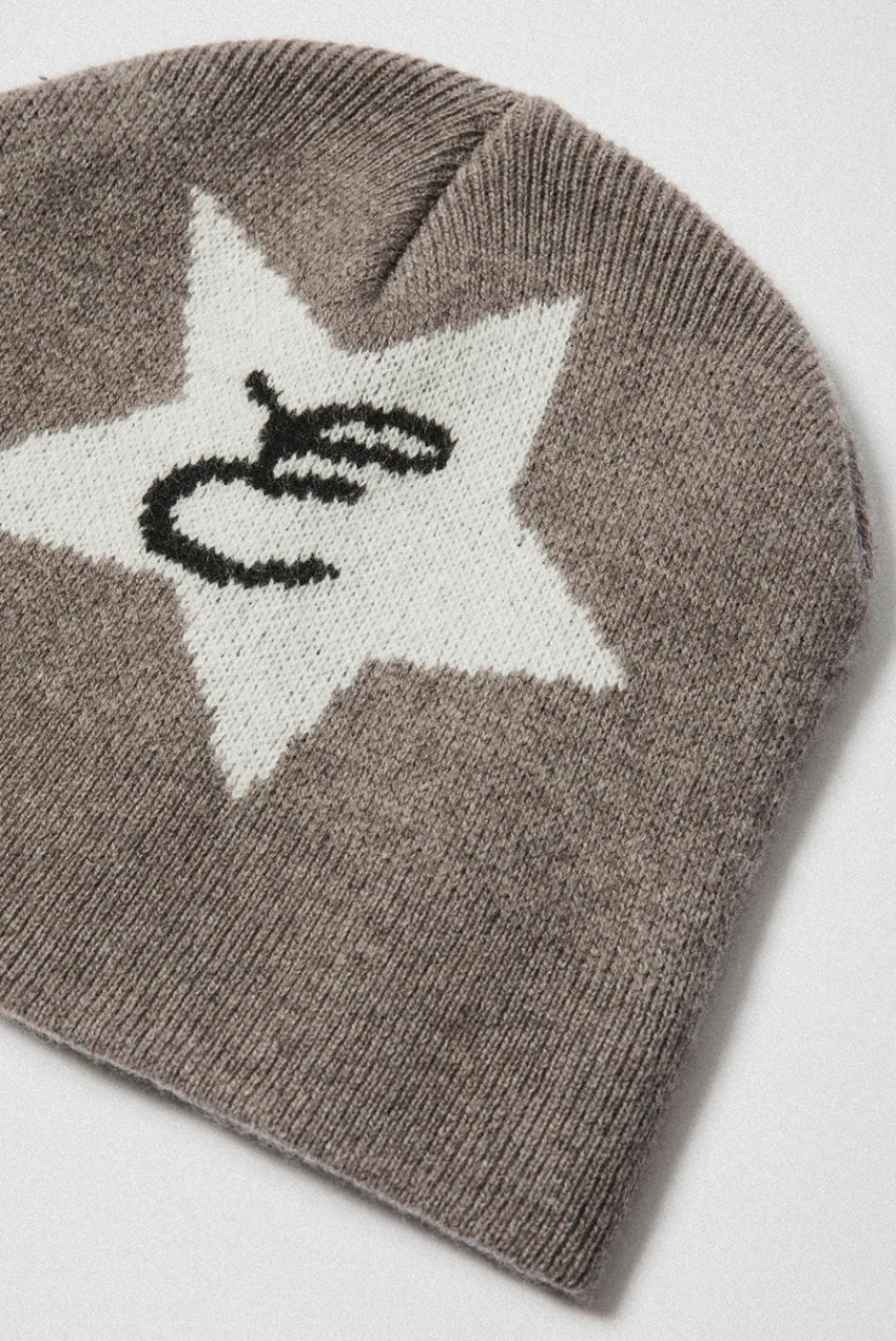 The Skull Cap Beanie is a bold accessory with a contrasting star motif and embroidery on the brown colorway. Just enough to keep things interesting. Available in Dull Brown and Navy.