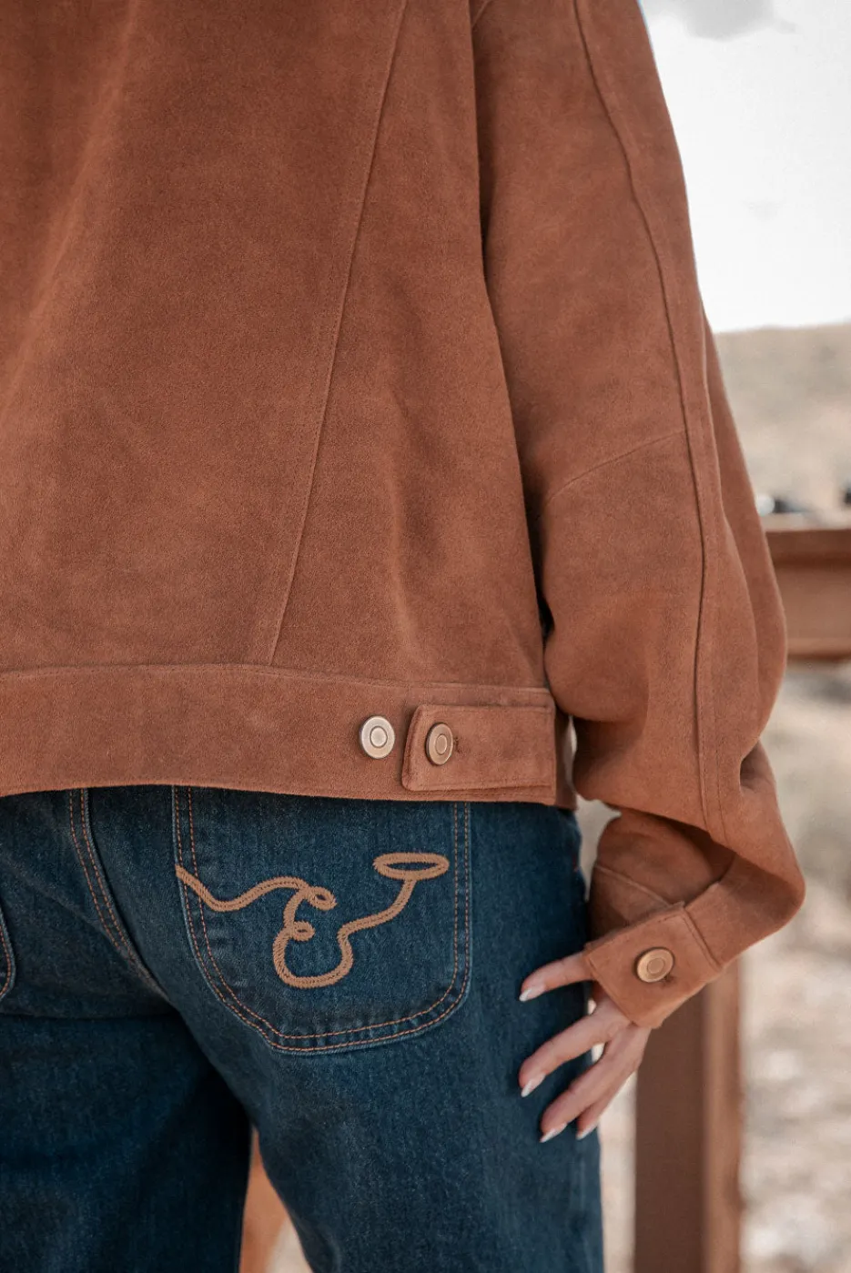 A timeless straight-leg denim pant with signature red bar tacks and lasso embroidery on the back pocket. Features custom hardware and a mid-rise. Available in Washed Black, Vintage Indigo, and Pond Wash.