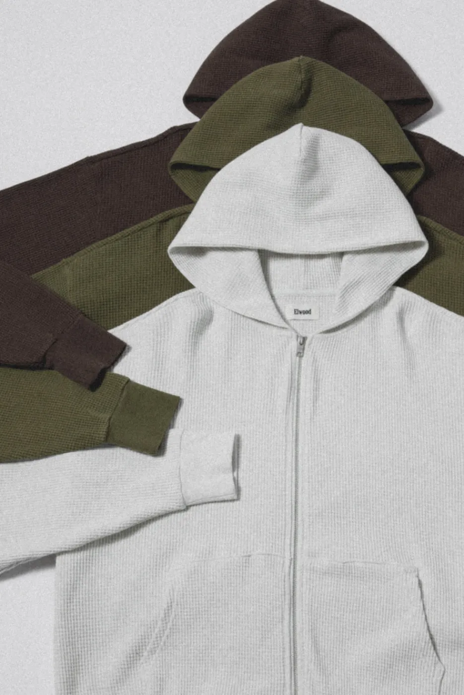 The Thermal Zip Hoodie is an unlined, slightly cropped piece with a boxy, oversized fit. Made from our new thermal fabric with a drop shoulder construction. Layer or wear it solo.