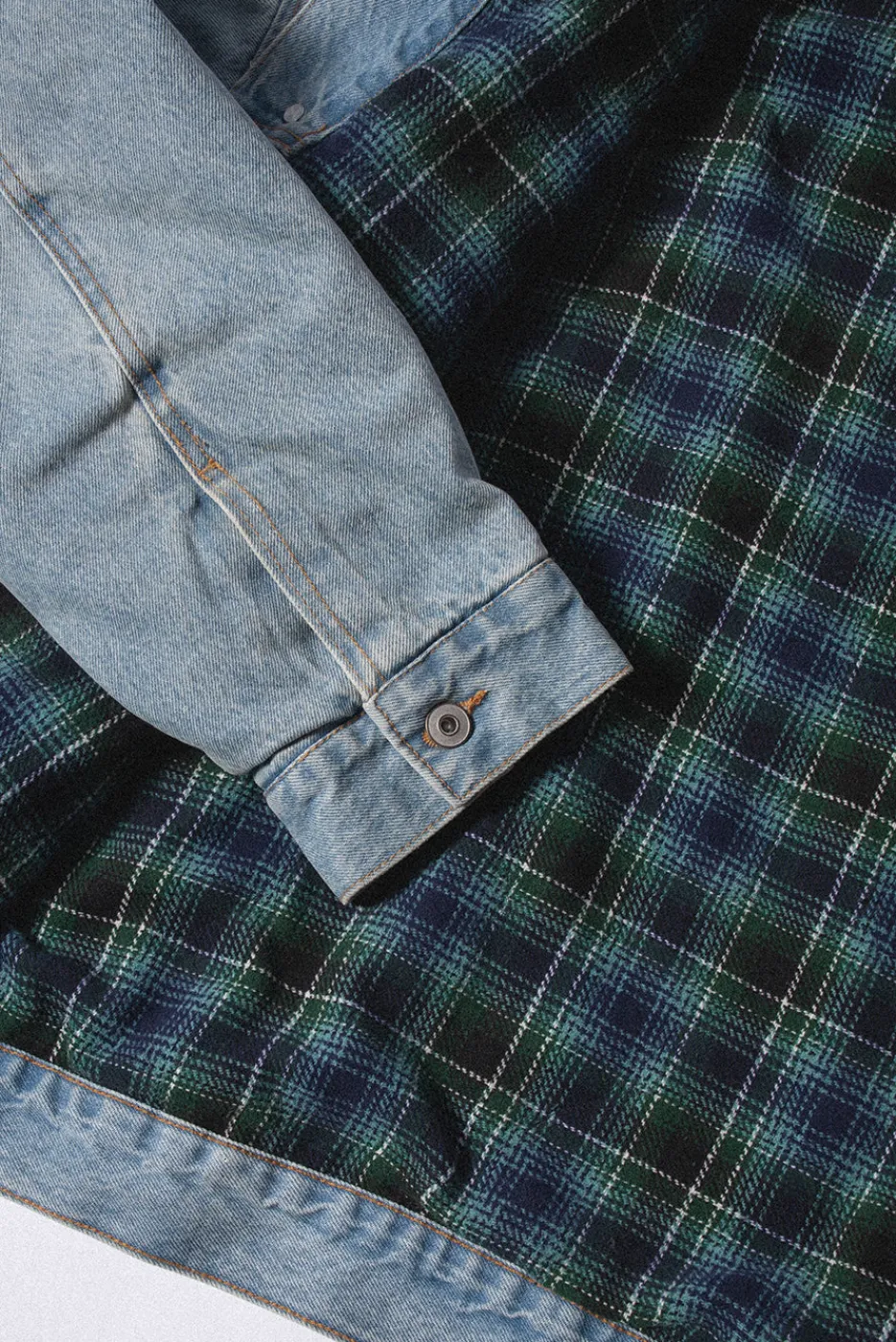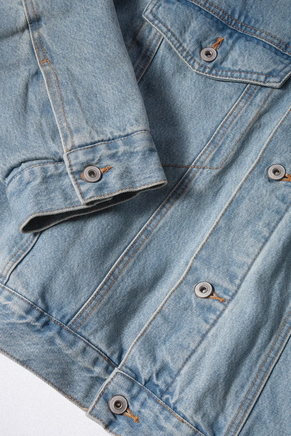 RIGID DENIM100% COTTONOVERSIZED BODYFULLY LINED WITH SOFT FLANNELINSPIRED BY VINTAGE GARMENTSWESTERN DENIM JACKET’