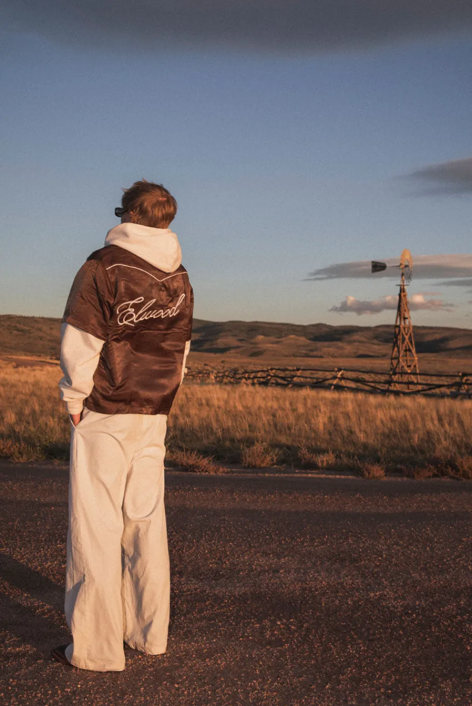 A western take on our classic Camp Shirt, this shirt features standout piping, a pearl snap button closure, and a Western yoke for a signature ranch-inspired style. Our Elwood spur logo is embroidered on the back, in lasso-inspired type. Available in Lotus and Soil.