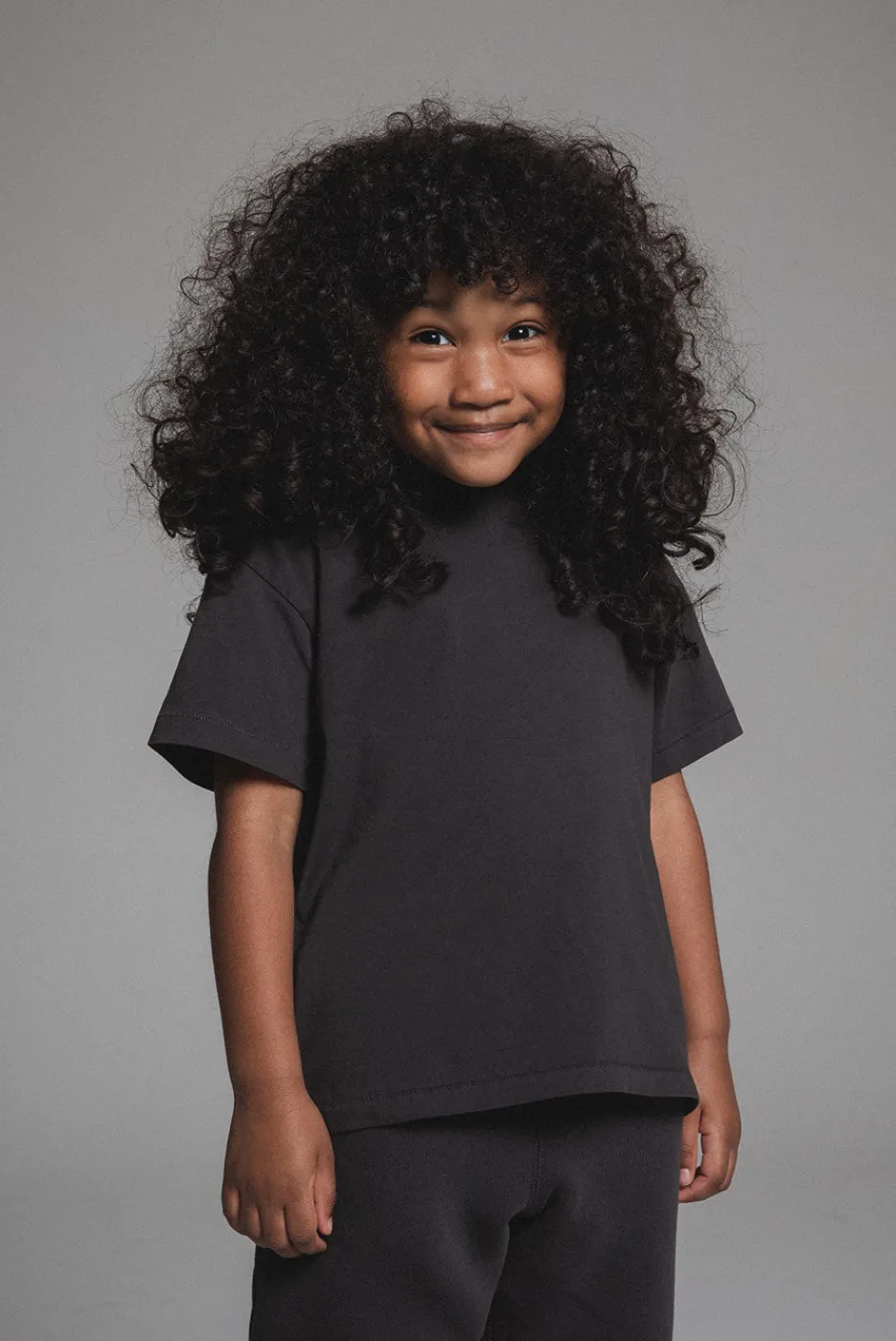 100% ORGANIC COTTONOVERSIZED FITGARMENT DYEDDISTRESSED NECKKIDS CORE TEEIf you want to match with your mini, check out o…
